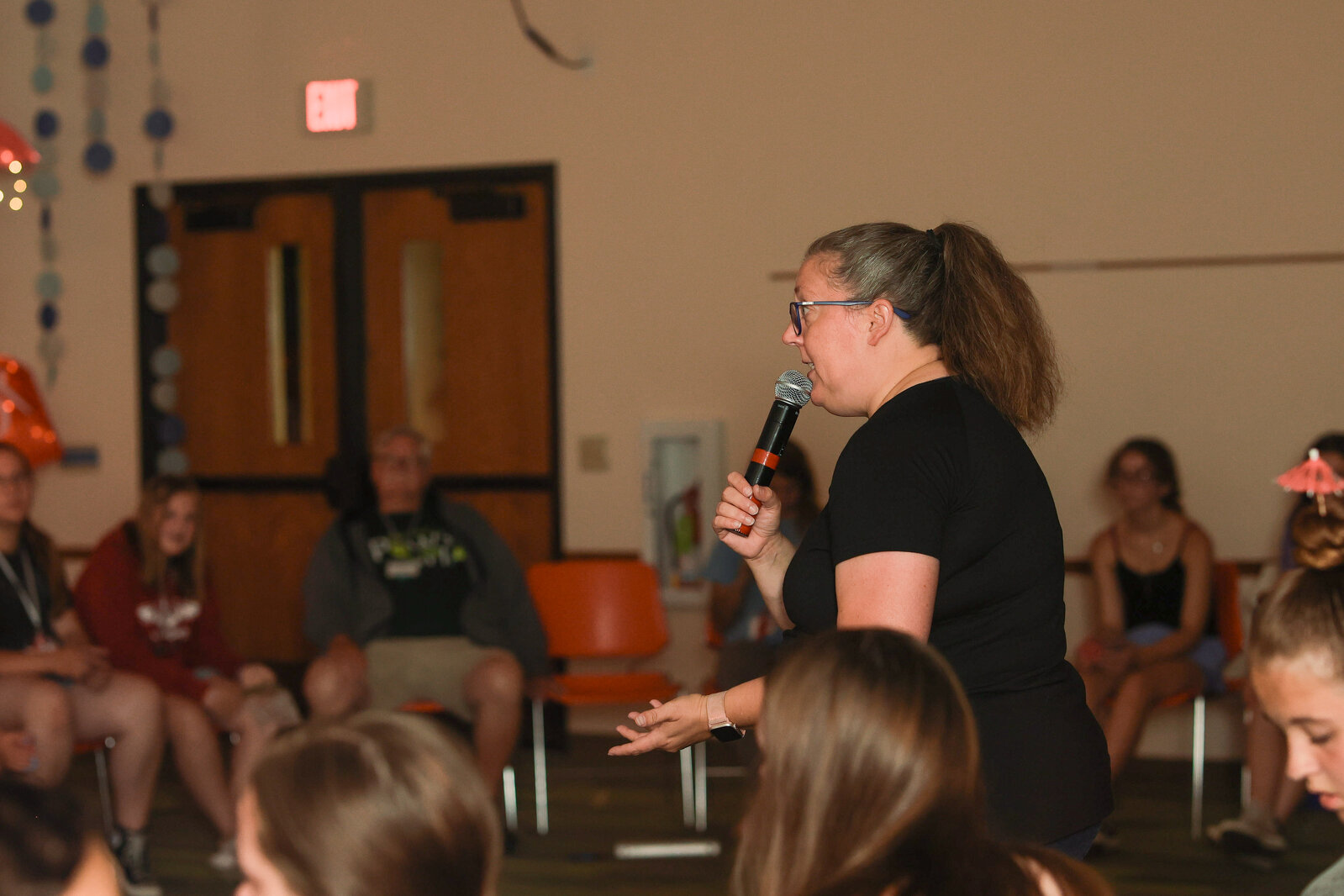 That thought disappears quickly as soon as the game begins! You’d be surprised by the frenzy that ensues. Each person has a flag, and the goal is to keep their flag. You see, in this game, each color is assigned another color to chase. Red chases Orange. Orange chases Yellow. Yellow chases Blue. Blue chases Red. If you are Red, you can only pull flags from the Orange team, but someone on team Blue might be coming to snag your flag, so watch out! The team with one person left standing at the end wins.